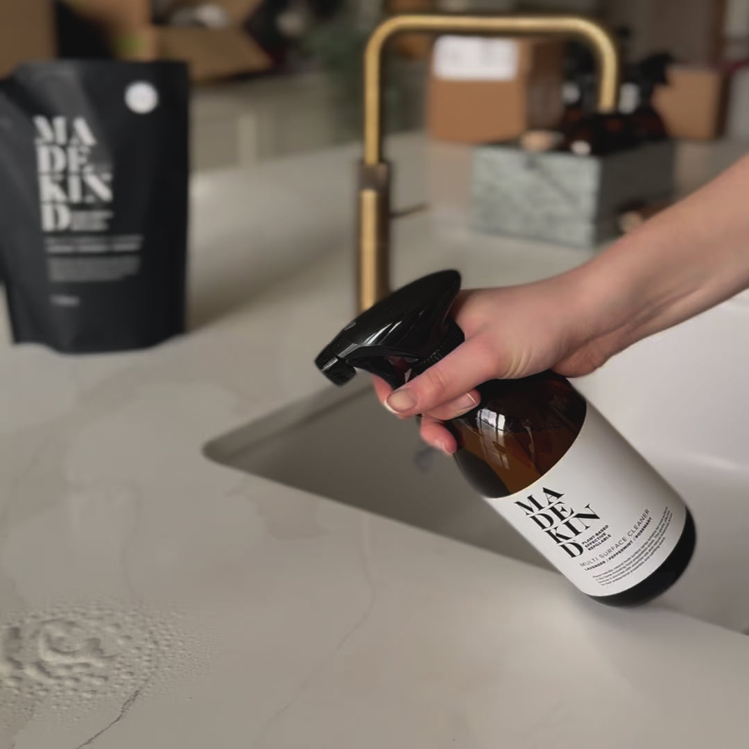 MadeKind natural Multi Surface Cleaner is suitable for most surfaces - kitchen counters, windows, mirrors, wooden tables etc.